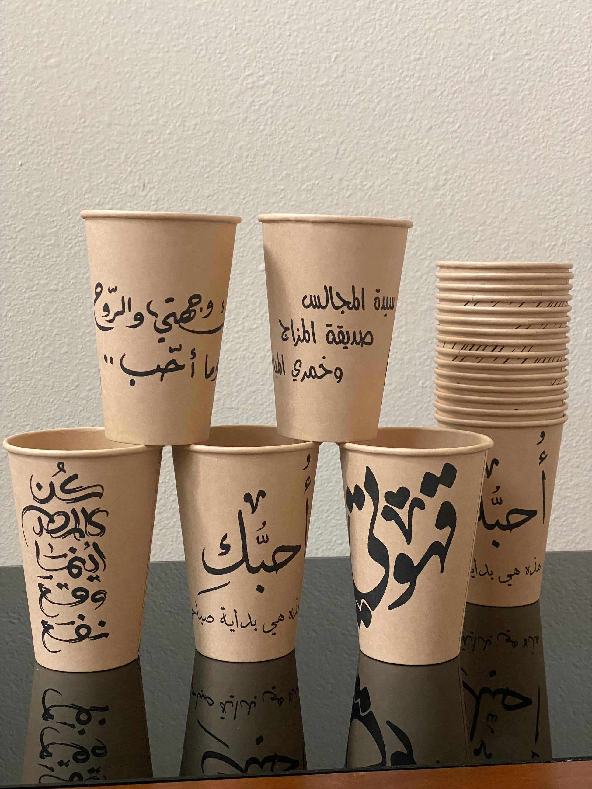 Arabic printed paper coffee cups ( set of 20 ) random designs .