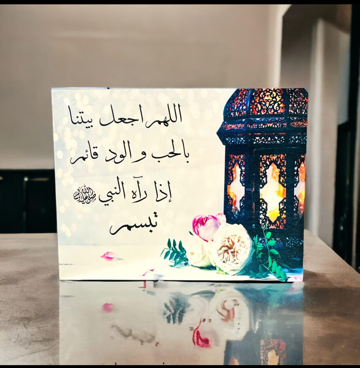 Design: At the heart of this panel is an artistically inscribed Arabic quote that epitomizes the happiness and unity of a loving family. The calligraphy is more than mere text; it's an artistic statement that adds elegance and cultural depth to your living space.