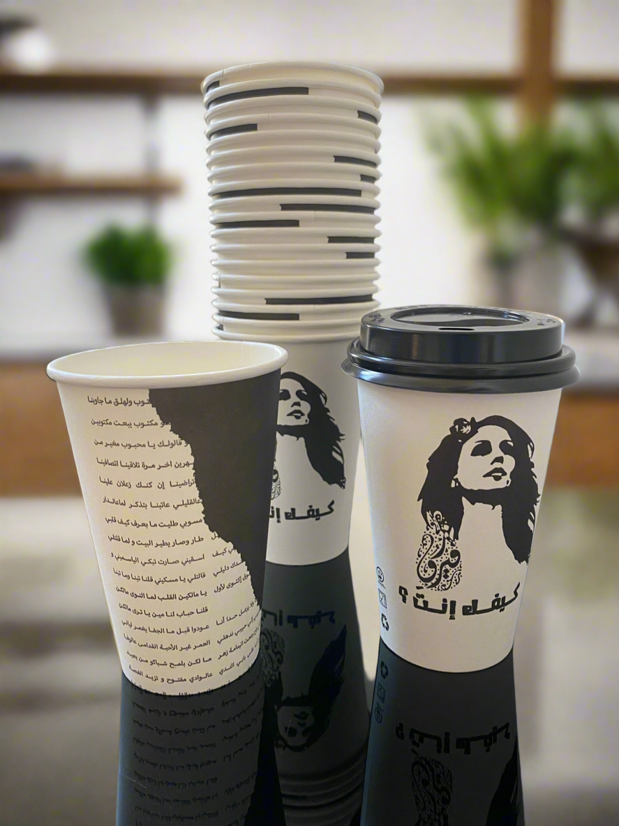 Enjoy your coffee with the soul-stirring influence of Fayrouz’s music through our Fayrouz-Inspired Paper Coffee Cups—a beautiful tribute to the voice that has touched millions.