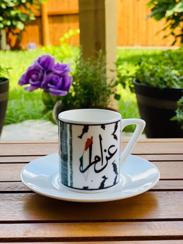 Kufia design Turkish Coffee Cup and Saucer with Custom name