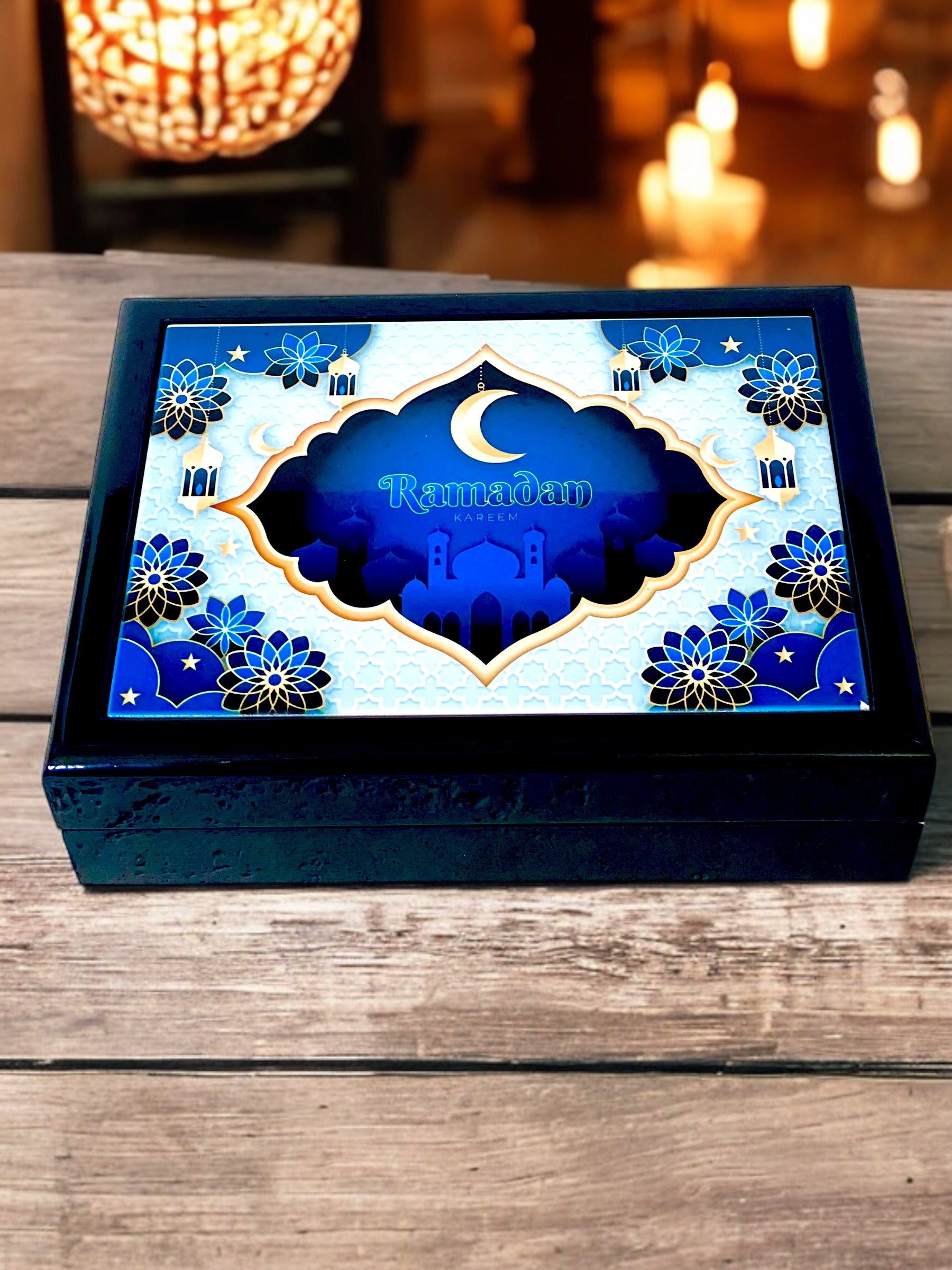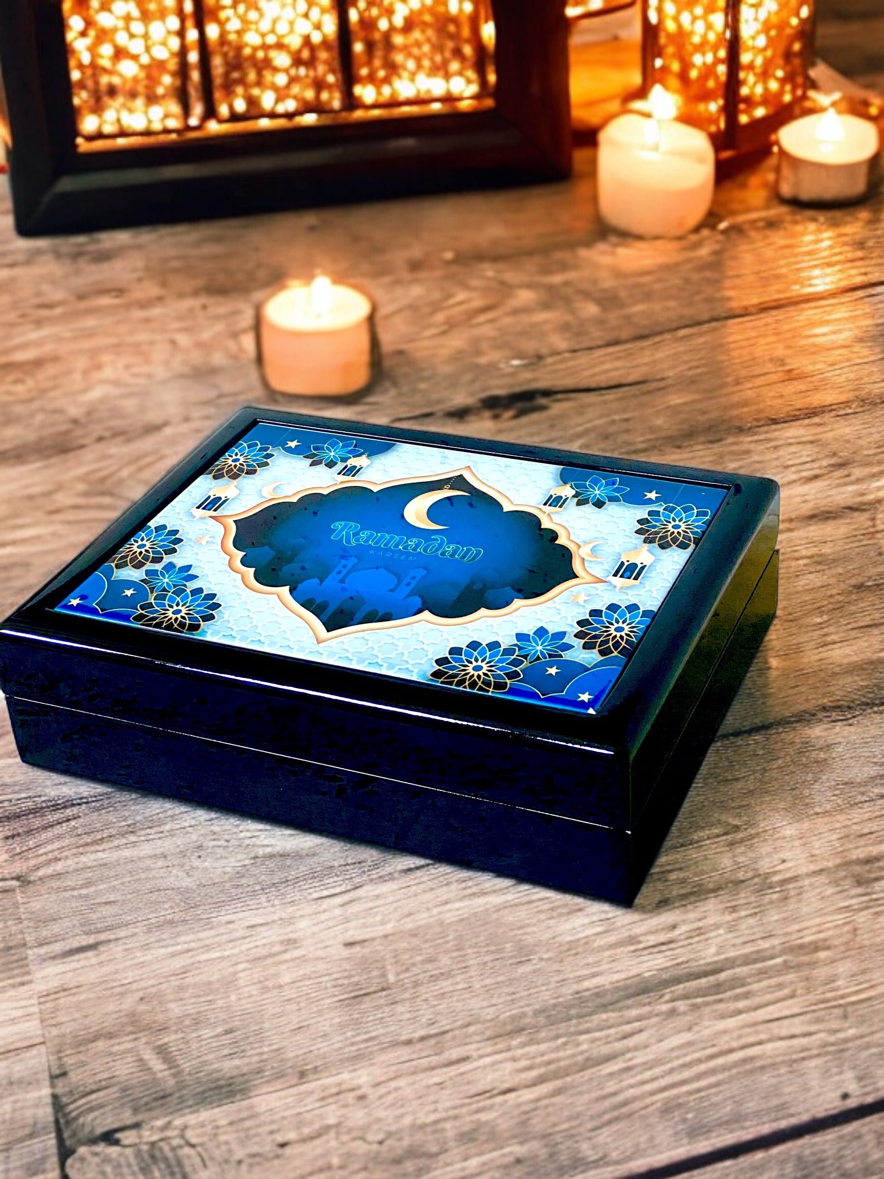 Discover the perfect Ramadan and Eid gift with our premium Wooden Box, adorned with exclusive Ramadan-themed decoration. Crafted from high-quality materials, this elegant box features a unique Ramadan design printed on a tile, adding a touch of spirituality and tradition to your gift-giving.