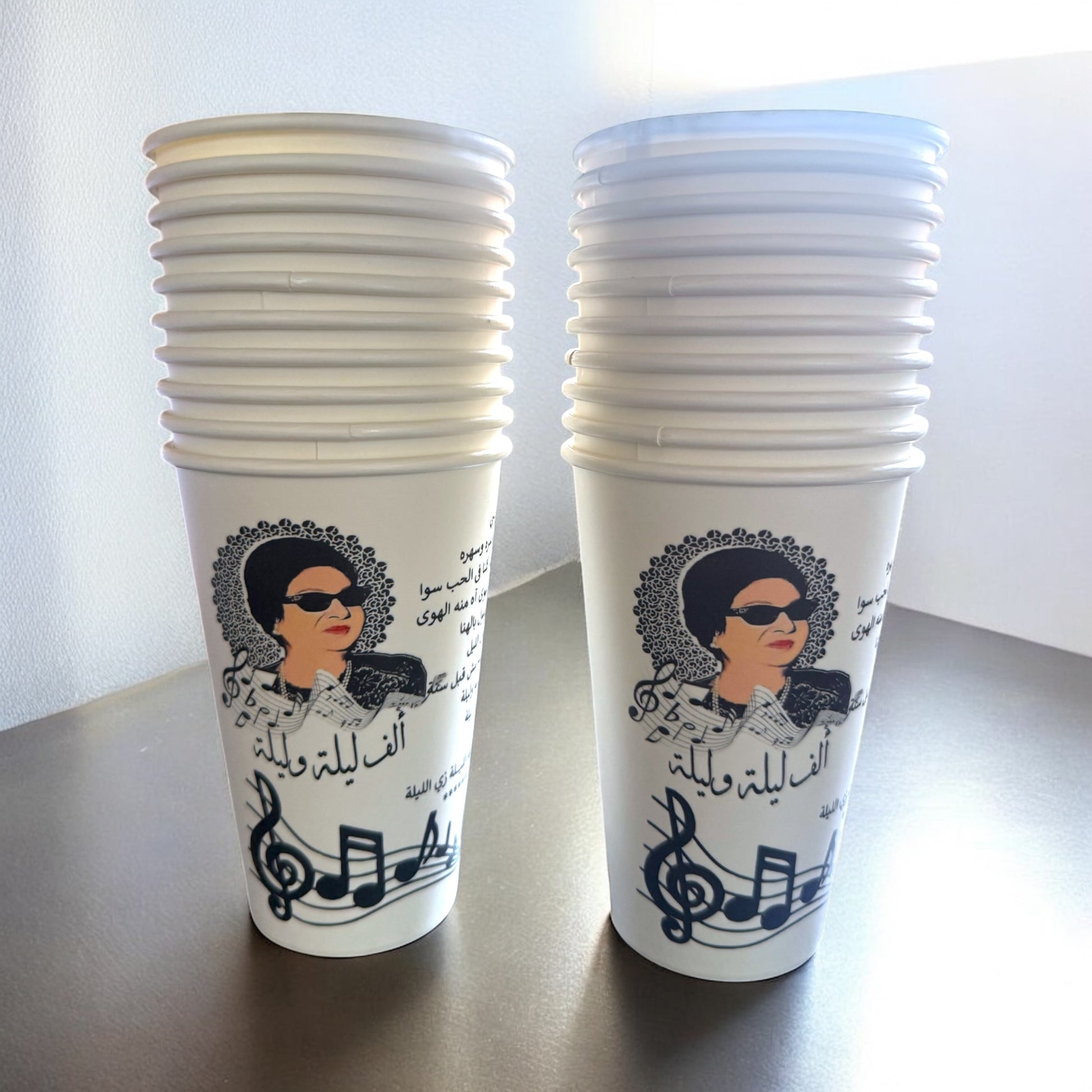 Umm Kulthum-Inspired Paper Coffee Cups – Set of 20 (16 oz)
