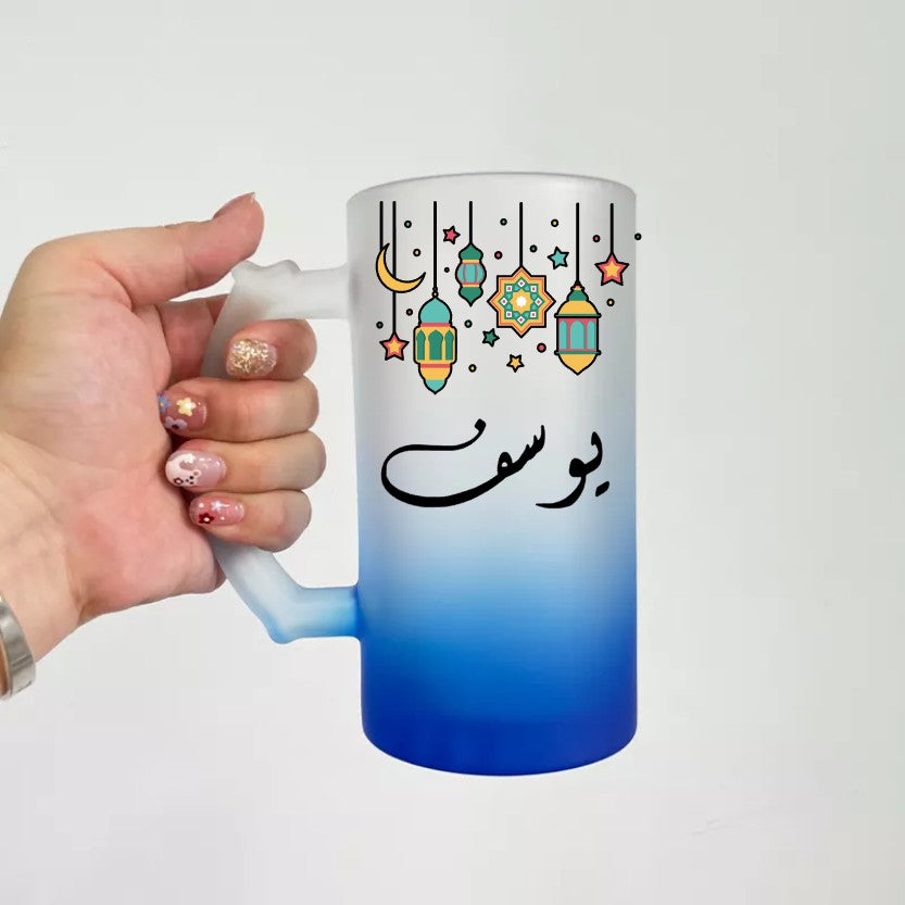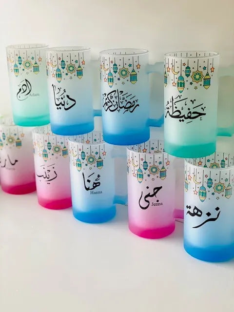 Whether for personal use or as a thoughtful gift, this custom-made glass cup captures the essence of Ramadan and adds a personal touch to your drinking experience. Cherish every moment of your day with this uniquely designed, personalizable glass cup.