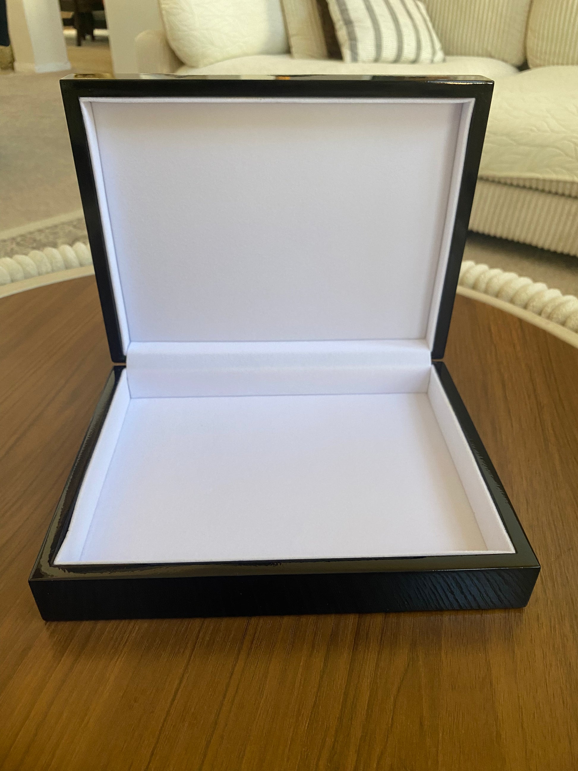 Lined with a plush interior, this elegant black wood-tone box provides a secure and stylish space to store treasured mementos, such as class rings, diplomas, or graduation cards. Whether as a gift for a graduate or a cherished family heirloom, this exclusive design from MyRoyalHouse.com ensures that their accomplishment is celebrated for years to come.