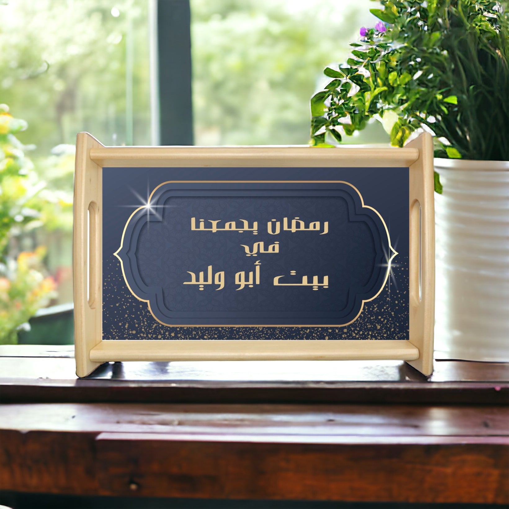 Personalized Ramadan Wood Tray Black and Gold Color