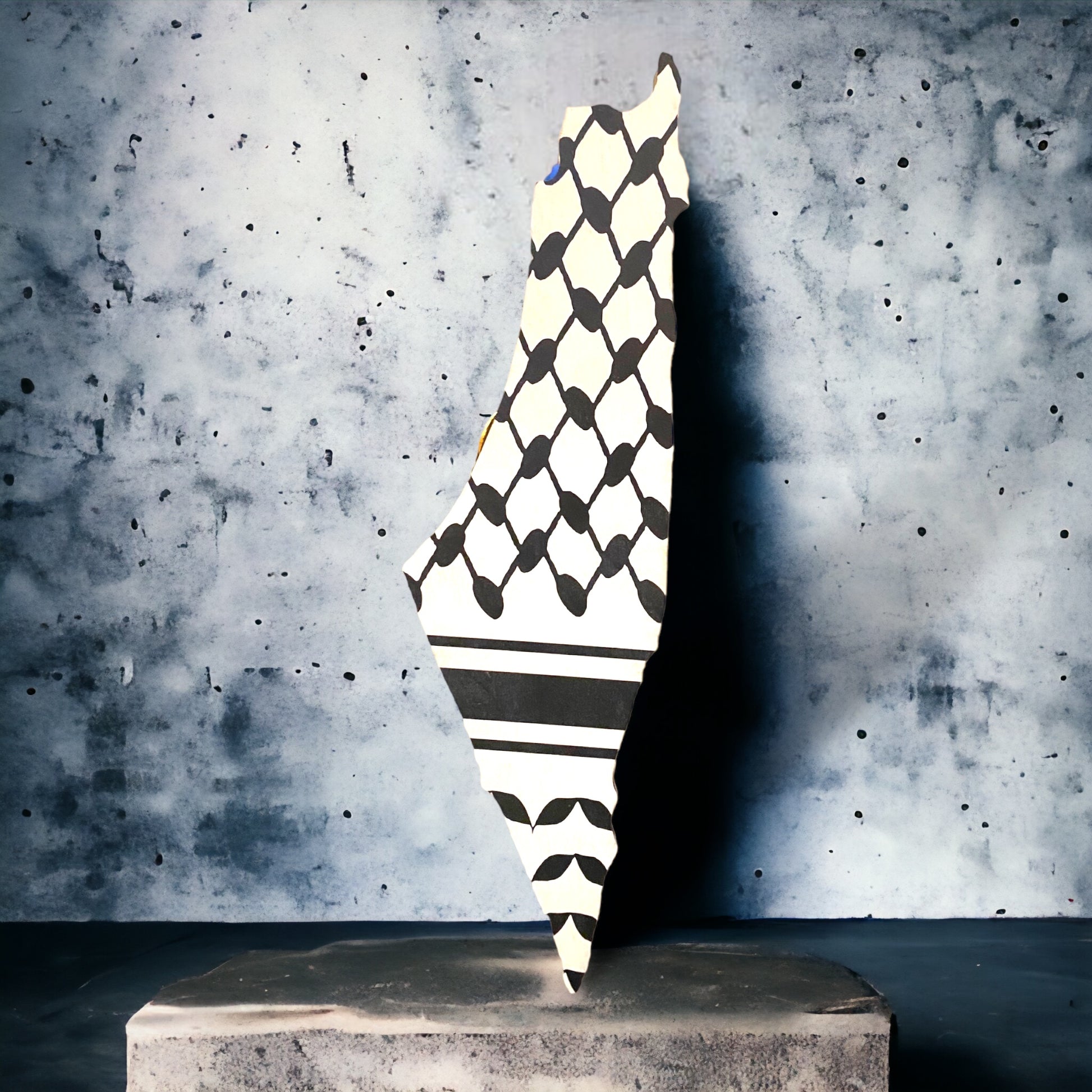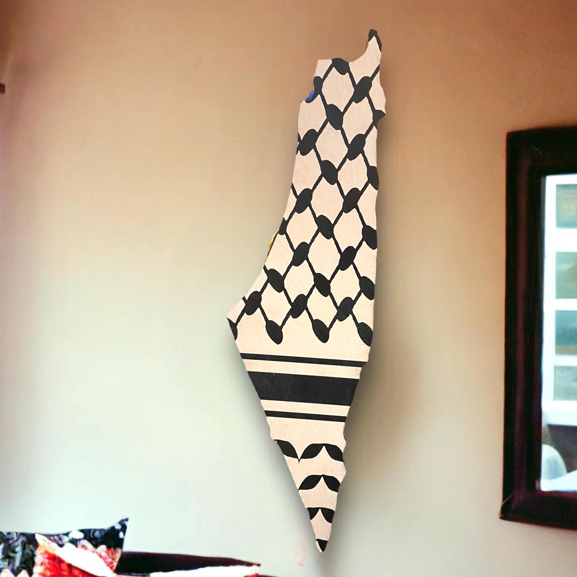 Immerse yourself in the rich heritage of Palestine with our exquisitely designed Wall Art, featuring a detailed map of Palestine intricately adorned with the traditional Kufiya pattern. Each piece is a testament to the enduring spirit and cultural depth of the Palestinian people.